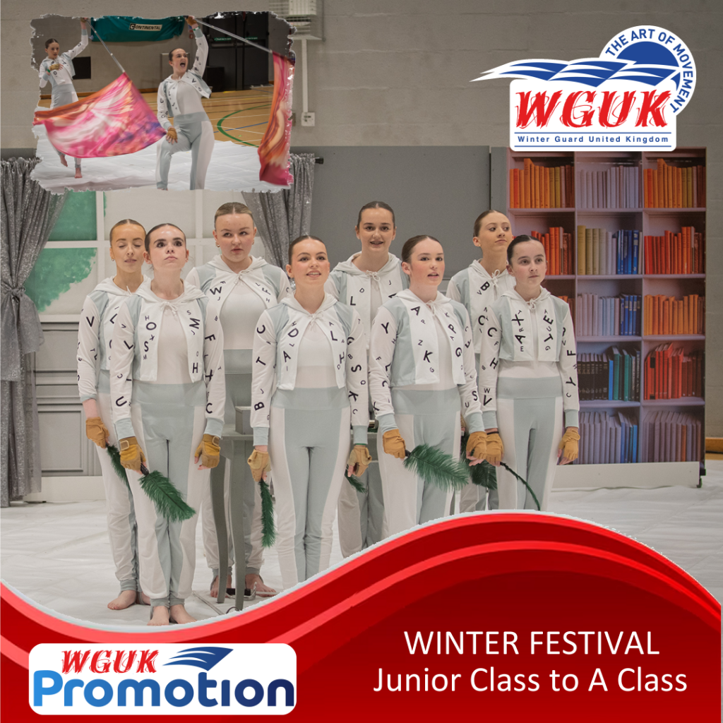 This is a fantastic achievement and the Guard will now perform last in their new class at their next contest, Leeds, and their success will be fully celebrated in a Promotion Ceremony at the 2026 British Winter Guard Championships on Saturday 4th April.